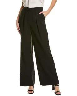 - Twill Suiting Pant in black with wide legs and dual side pockets