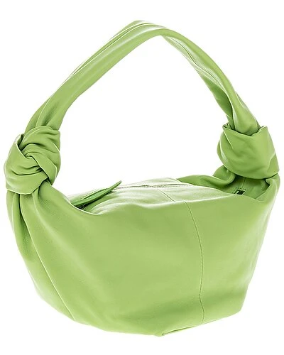 - Double Knot Leather Hobo Bag in pistachio leather and silver-tone hardware with knot accent on handle