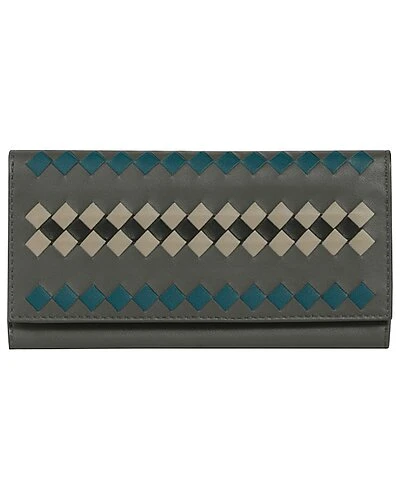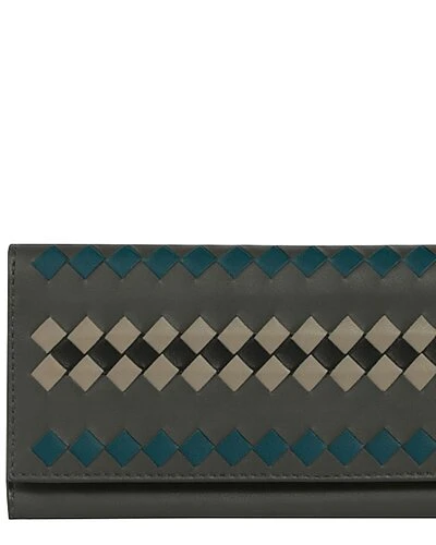 - Intrecciato Leather Bifold Wallet in grey leather with signature intrecciato woven design