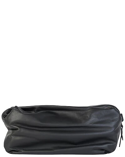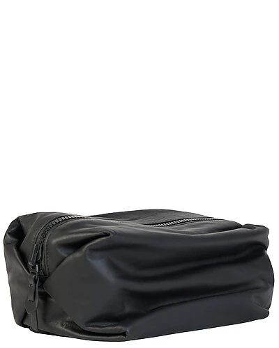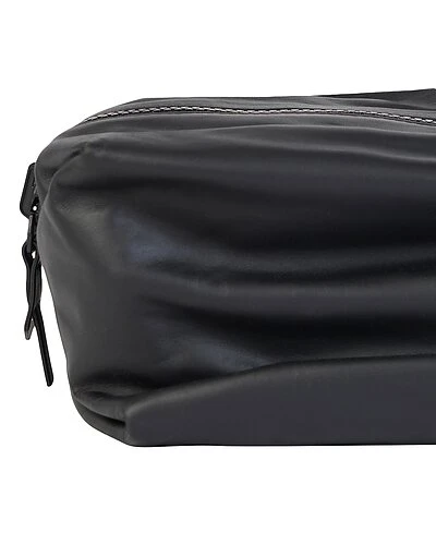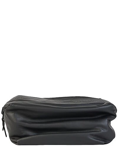 - Leather Cosmetic Case in black orange leather with zippered case on strap