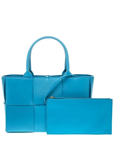 - Small Arco Leather Tote in pool leather and gold-tone hardware with intreccio smooth leather