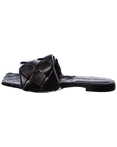 - BV Lido Intrecciato Leather Slide in black intrecciato leather with squared toe