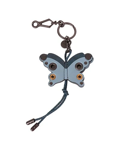 - Butterfly Leather Keychain in blue leather and silver-tone hardware with chain with clasp