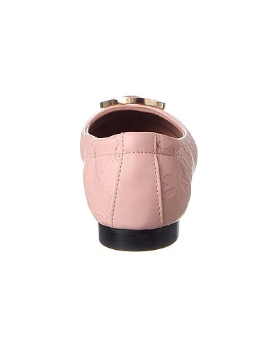 - Calliope Leather Flat in nude monogram embossed leather and gold-tone hardware with logo accent