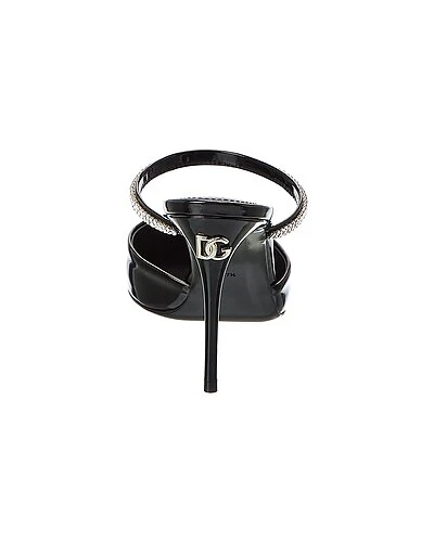 - Leather Pump in black leather and silver-tone hardware with logo accent and crystal-embellished strap