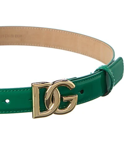 - Color/material: green shiny leather