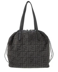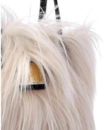 - Small Shopper Tote in white faux fur and black leather and gold-tone and silver-tone hardware with logo plaque