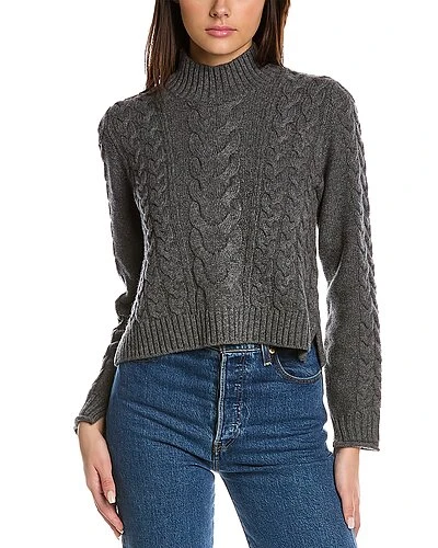 - Ella Crop Cable Wool & Cashmere-Blend Sweater in graphite with high-neck, cable knit, ribbed trim, furled cuffs and cropped hem with side slits