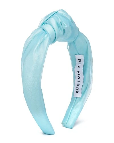 - Karyn Headband in aqua with shiny satin layered design and knot