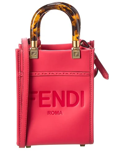 - Sunshine Mini Leather Tote in pink leather with gold-tone hardware and Plexiglas top handles