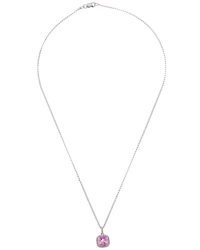 - Faceted cushion-cut bezel-set pink topaz gemstone = 2.10 ct. tw.