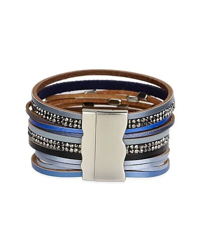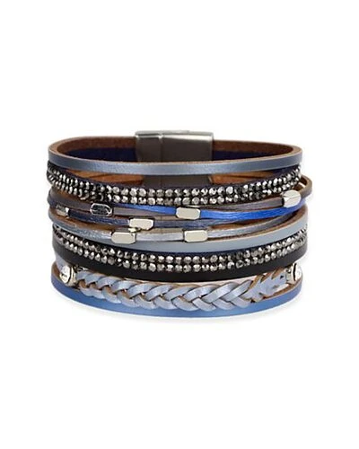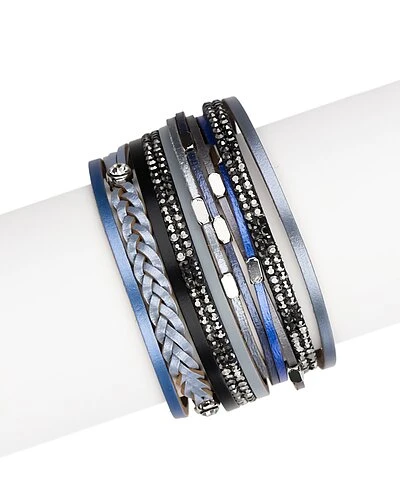 Flaming Blue Hues Leather And Crystal Bracelet Women