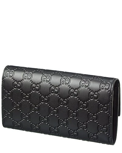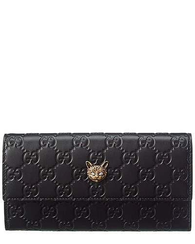 - Guccissima Leather Wallet in black guccissima leather and light fine gold hardware with crystal-embellished cat