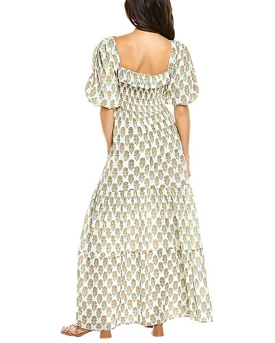 - Design details: square neck, smocked waist, elbow-length puff sleeves with ruched detailing, and dual side seam pockets