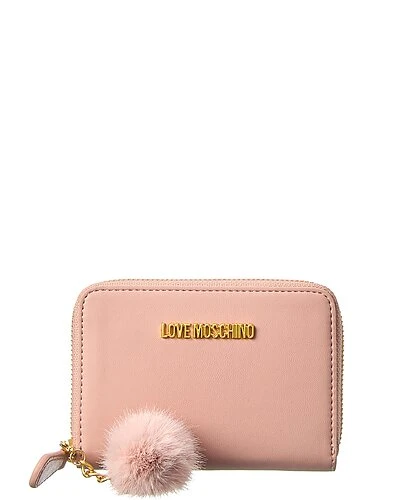 - Design details: gold-tone hardware, logo lettering and removable faux fur pom
