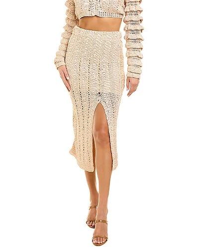 - Arbor Midi Skirt in sand with macrame knit, elasticized waist and split hem