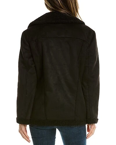 - Plush Lined Jacket in black with exaggerated notch lapel and dual zip pockets