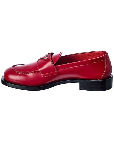 - Logo Leather Loafer in red leather and steel-finish hardware with logo accent