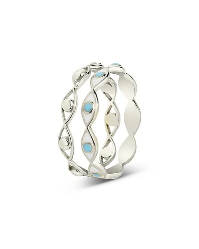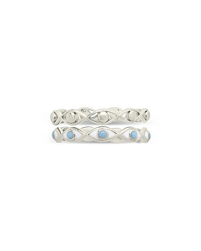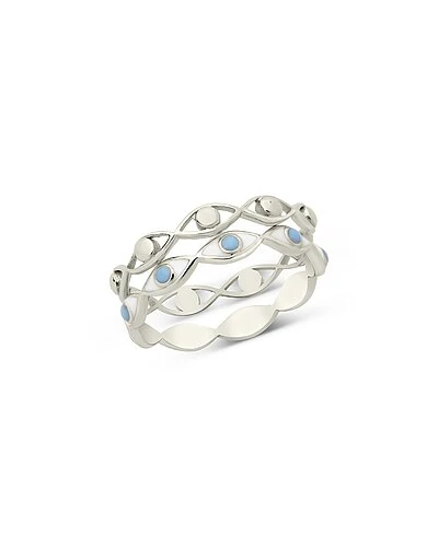 Rhodium Plated Enamel Evil Eye Set Of 2 Stacking Rings Women