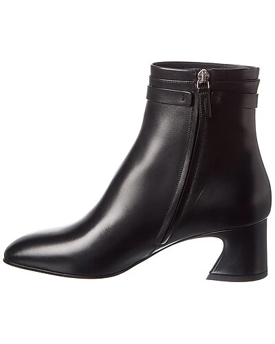 - Rego Leather Bootie in black leather and silver-tone hardware with logo accent and curved heel