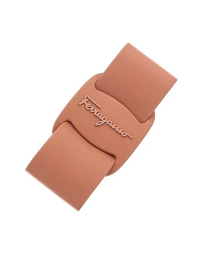 - Viva Bow Leather Hairclip in new blush leather with gold-tone hardware