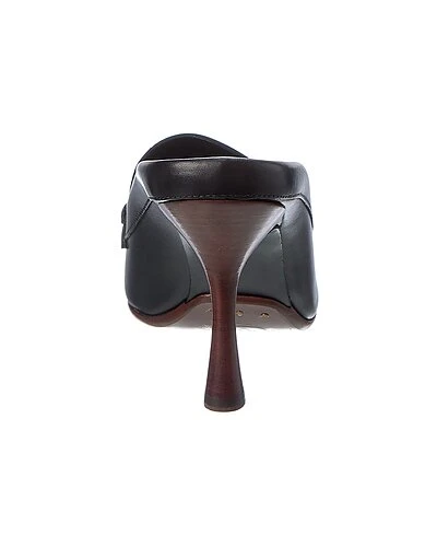 - Leather Mule in black leather with embossed logo and wooden heel
