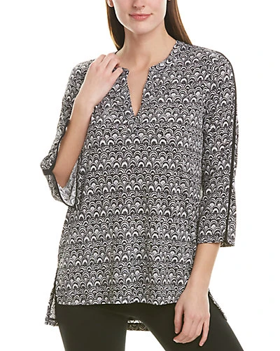 - Design details: V-neck, 3/4-length sleeves, step hem with side slits at seams