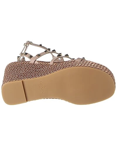 - Leather Sandal in powder leather with platinum finish pyramid stud details and hardware and rope base