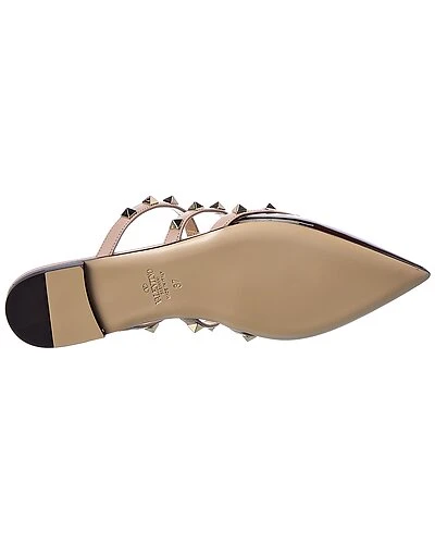 - Rockstud Patent Flat in burgundy patent leather with platinum-finish rockstuds and powder leather trim