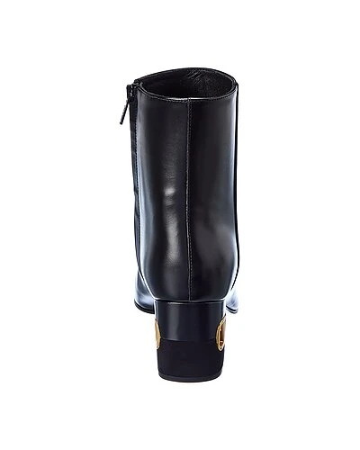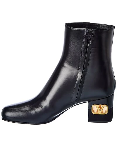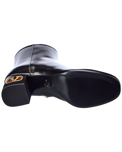 - VLogo 60 Leather Bootie in black leather and gold-tone hardware with suede heel with cutout VLogo