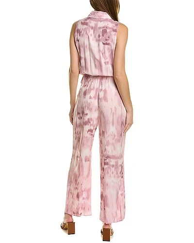 - Collared Watercolor Jumpsuit in corsage pink with spread collar, self-tie front hem, and elasticized waistband