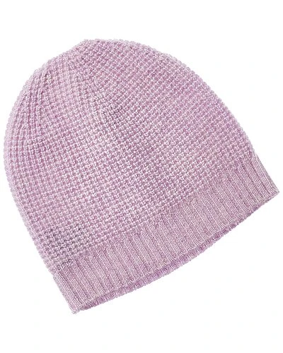 - Waffle Stitch Cashmere Hat in purple with ribbed trim